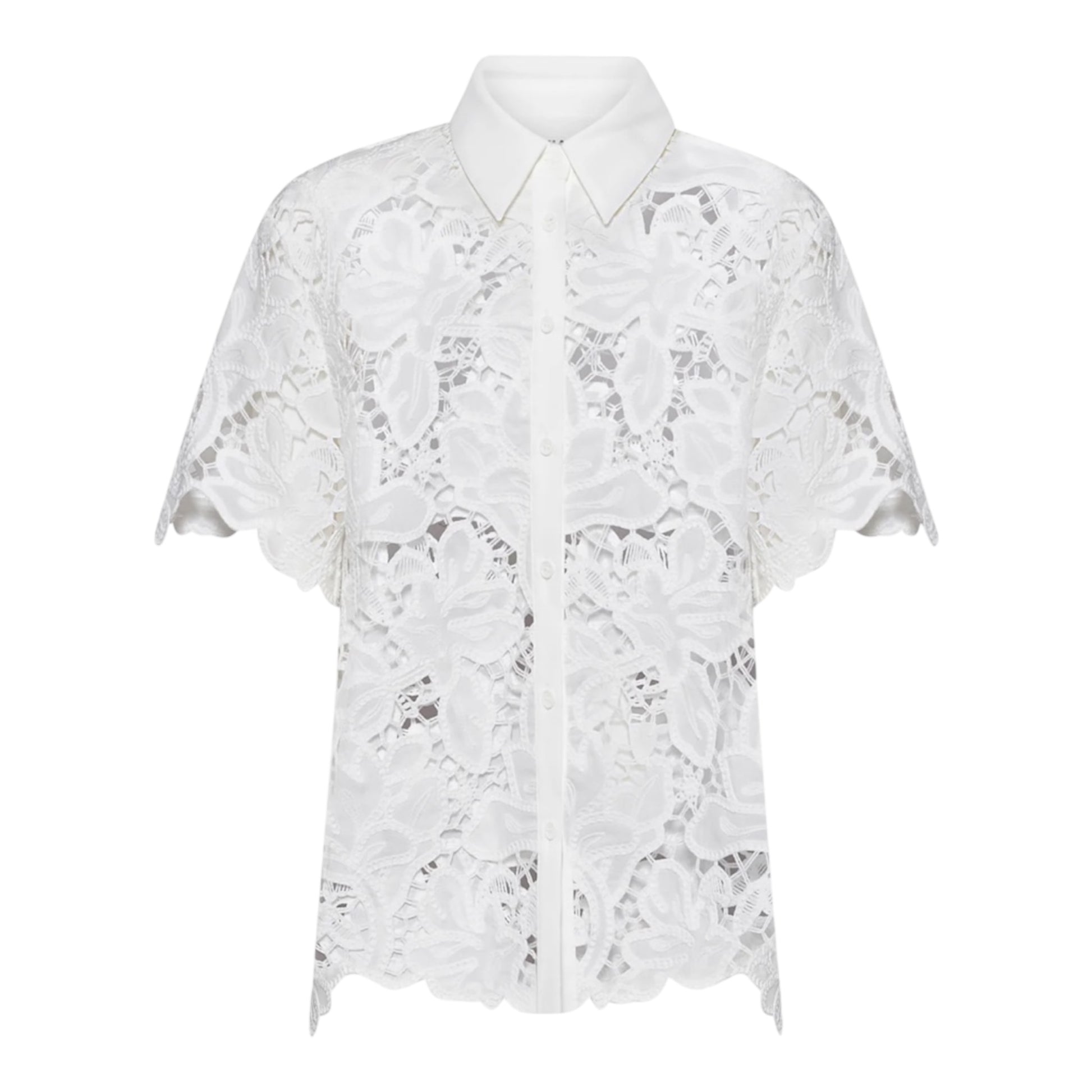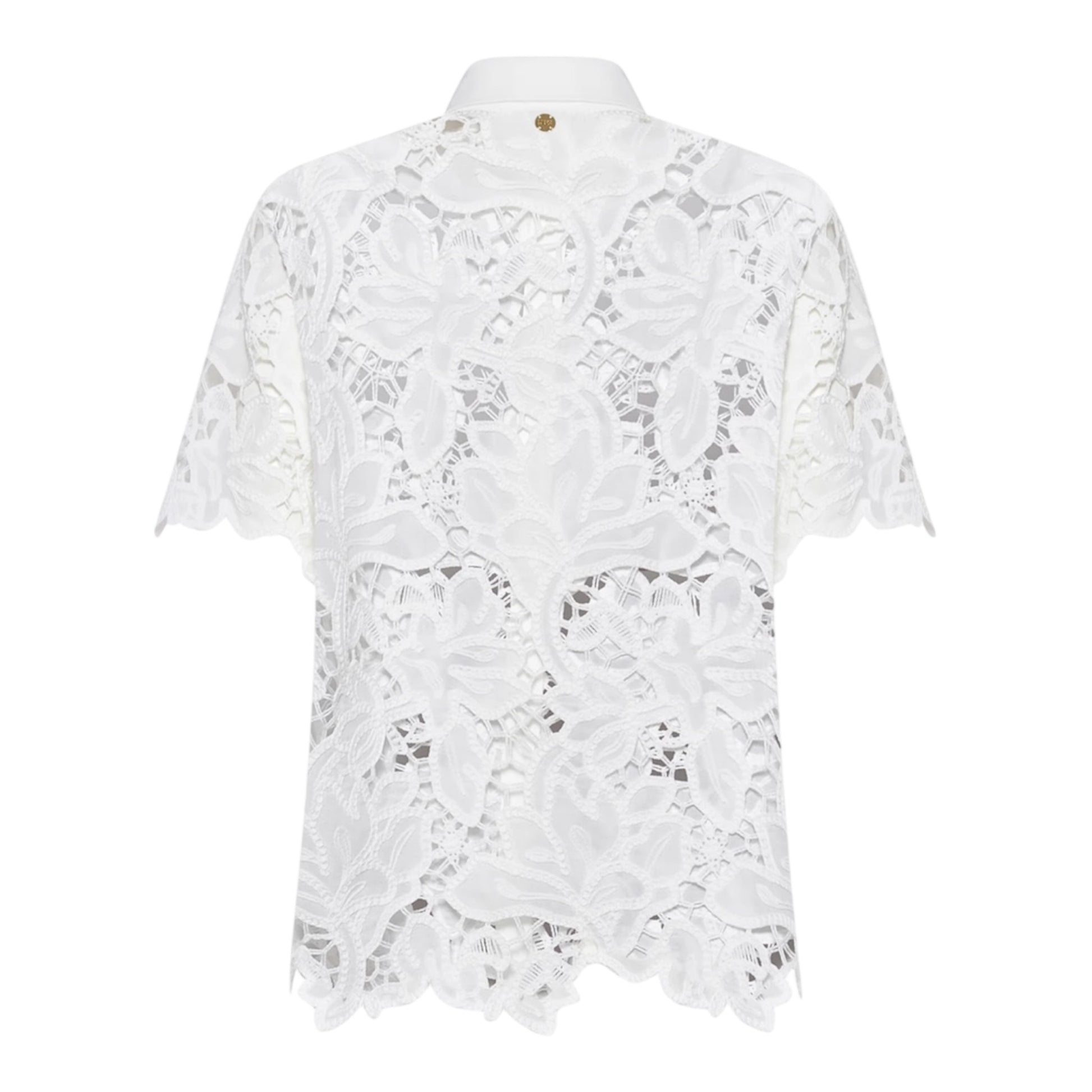 Camicia dallo stile raffinato e altamente decorativo, definita da una lavorazione elaborata che valorizza il design con un’eleganza sofisticata. La struttura classica viene reinterpretata in chiave contemporanea attraverso un motivo ricercato, capace di creare un raffinato gioco di pieni e vuoti. Un capo pensato per esprimere femminilità e lusso con naturalezza, ideale per elevare qualsiasi guardaroba esclusivo.