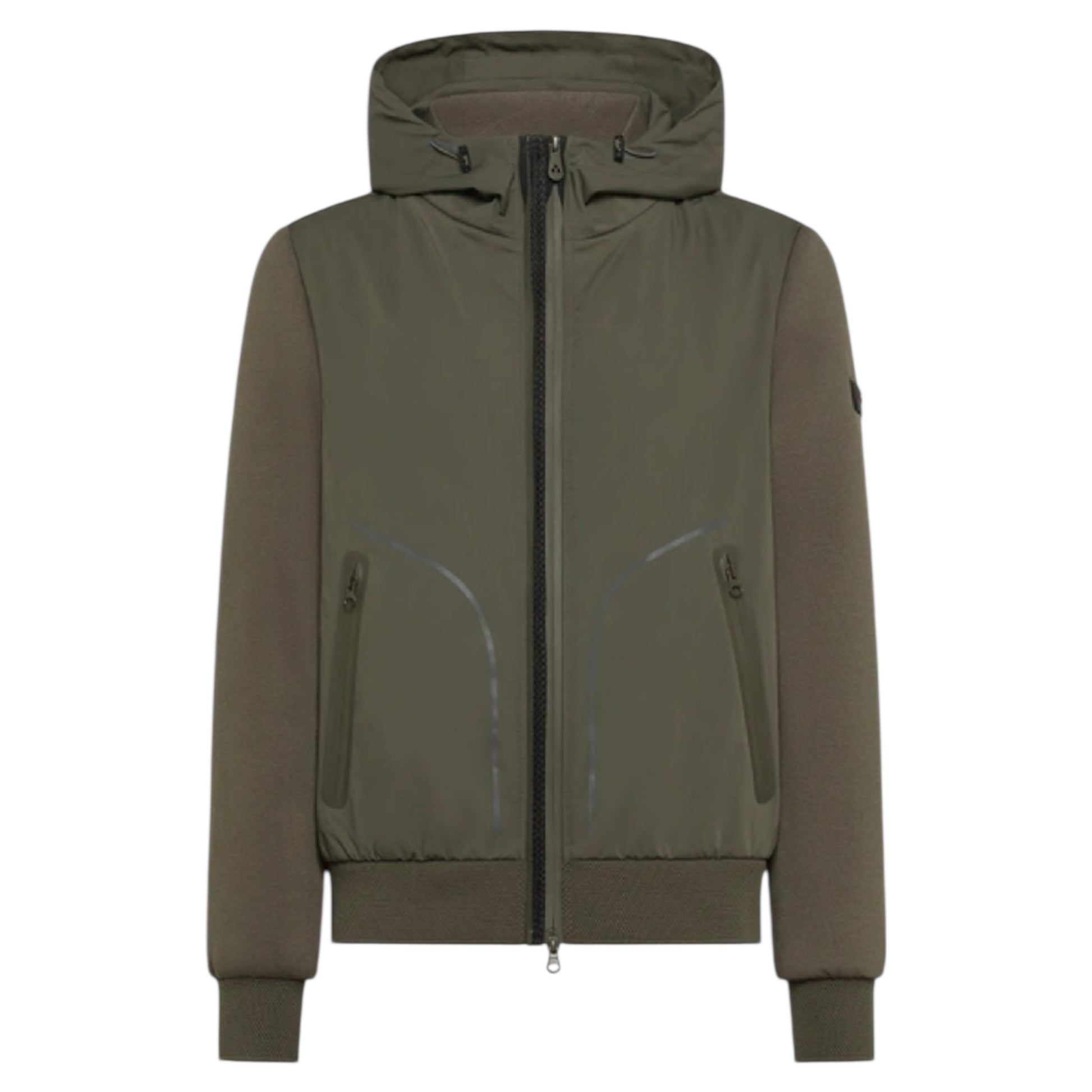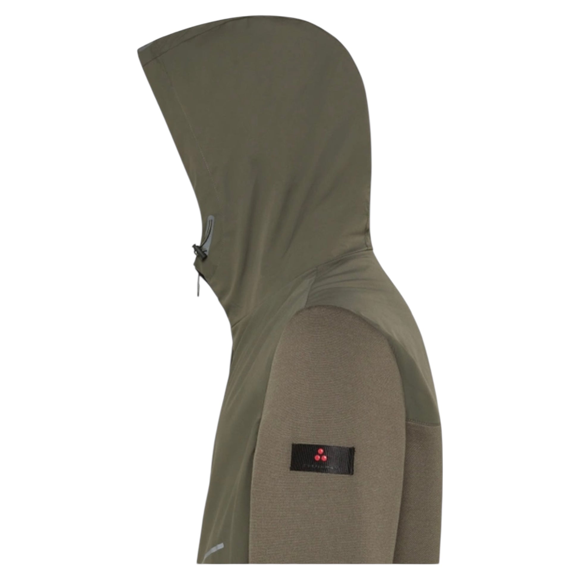 Felpa in doppio tessuto che unisce comfort tecnico e stile urbano, ideale per un utilizzo trasversale. Il tessuto primario, una rete di scuba di poliestere elasticizzato con interno in maglino di viscosa garantisce una mano calda, morbida e confortevole. Il tessuto secondario, una tela di nylon bi-stretch accoppiata ad un morbido jersey di poliestere, dona tecnicità e comfort al capo. Imbottitura in Primaloft che ne garantisce leggerezza, morbidezza e comfort termico. Parte dell’iconica linea Transeasonal, una rappresentazione del concetto urban in cui comfort, praticità e stile si uniscono a uno studio approfondito dei materiali e dei pesi dando vita a capi versatili e adatti a ogni stagione. Il design è completato da cappuccio fisso in nylon con tiranti, doppia zip centrale per regolare con praticità il capo e ampie tasche laterali con piping neri. Un capo ibrido che fonde la praticità e lo spirito sportivo di una felpa alla protezione e funzionalità di una giacca leggera. Parte della linea Transeasonal, sviluppata con materiali e pesi studiati per un utilizzo versatile in ogni stagione.