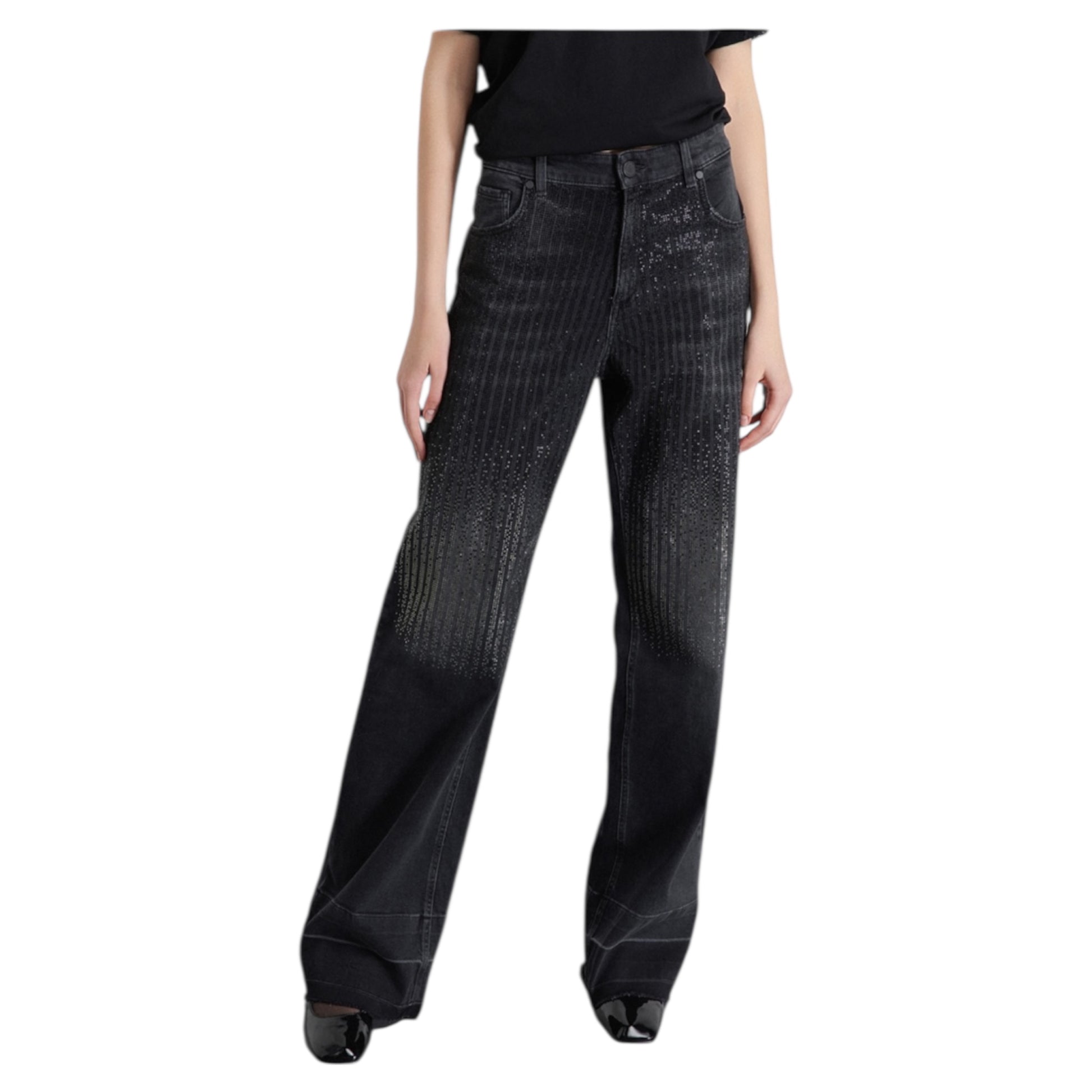Pantalone Loose Fit Oversize Extralong Con Applicazione Strass
