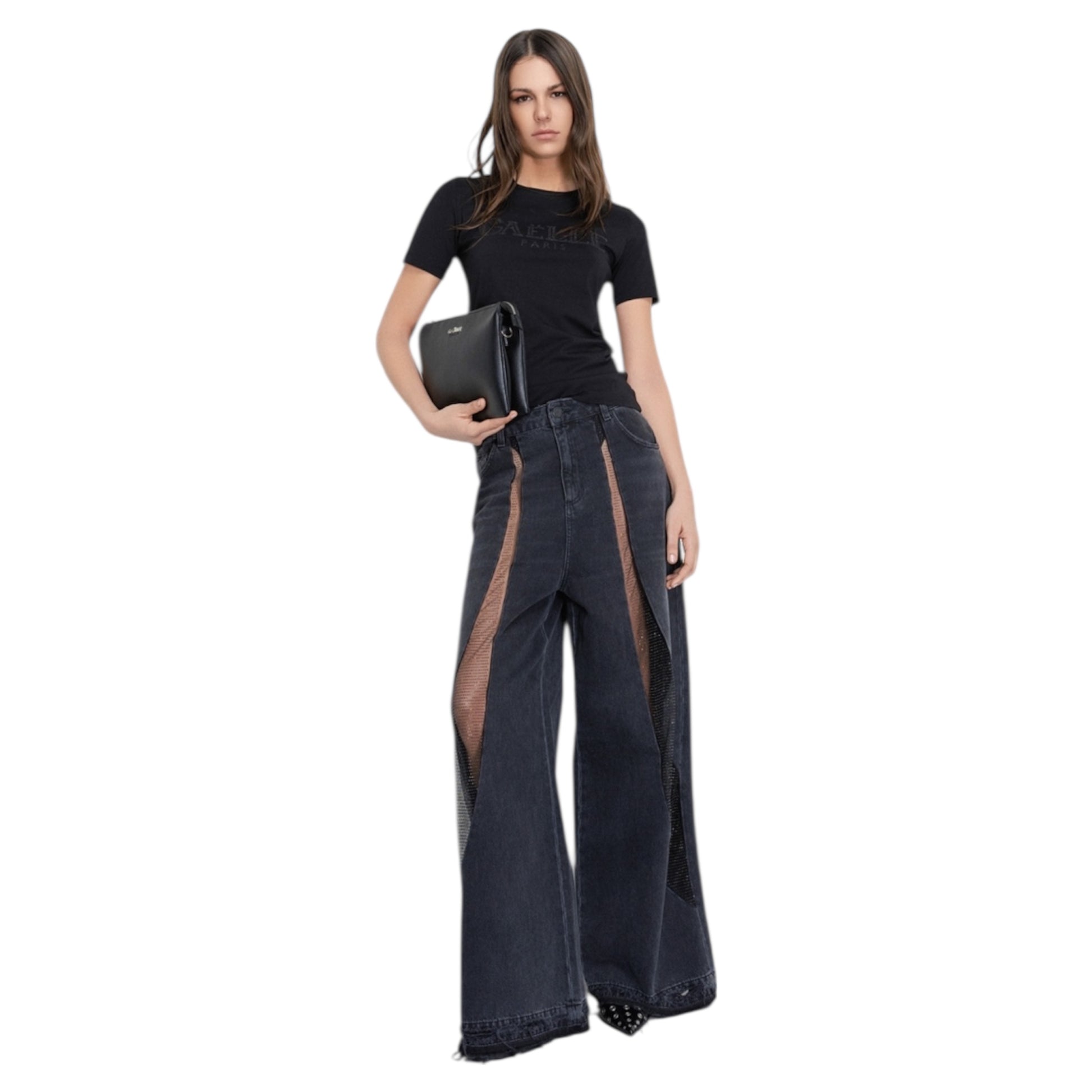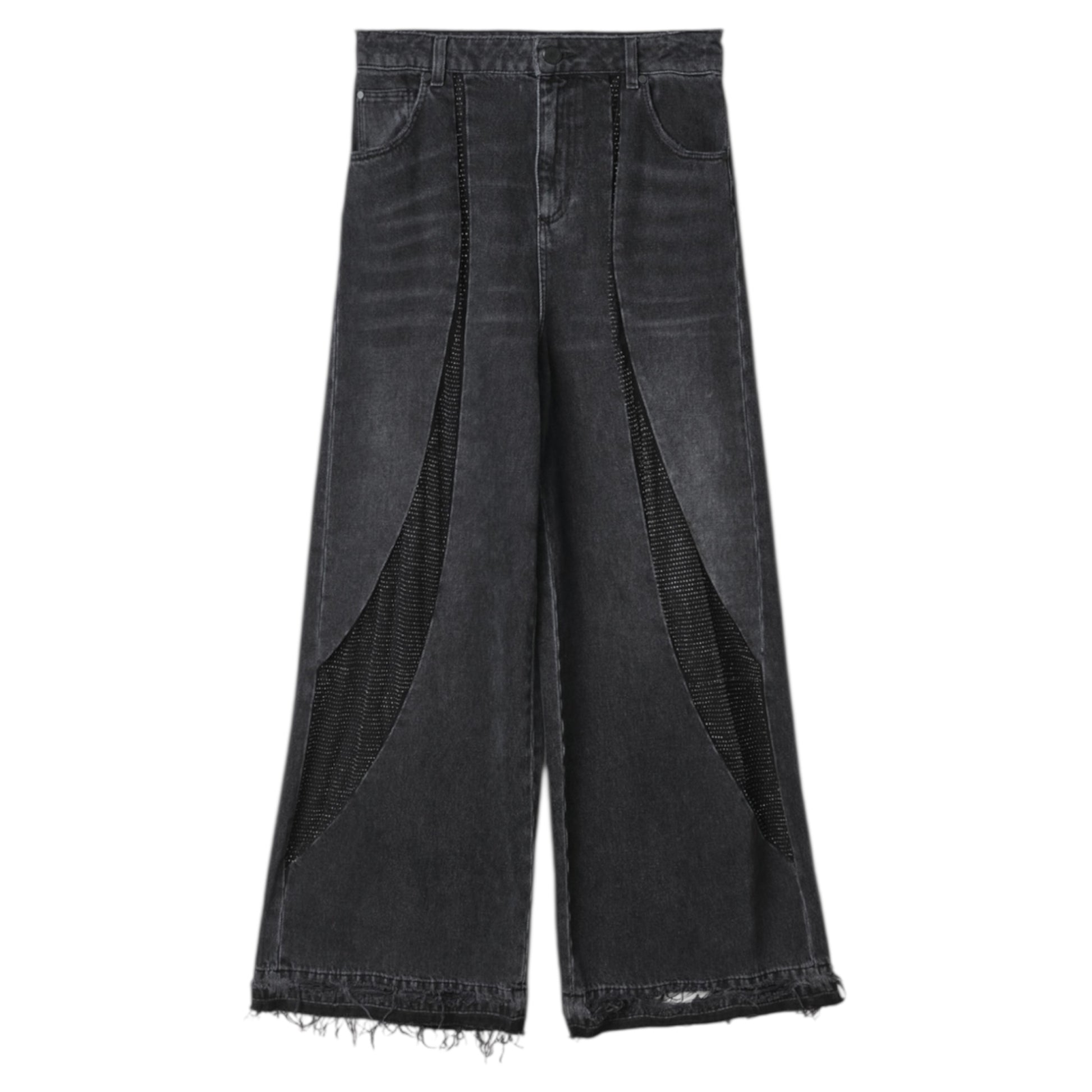 Pantalone Loose Fit Over Extralong Con Fondo Scucito E Micro Strass