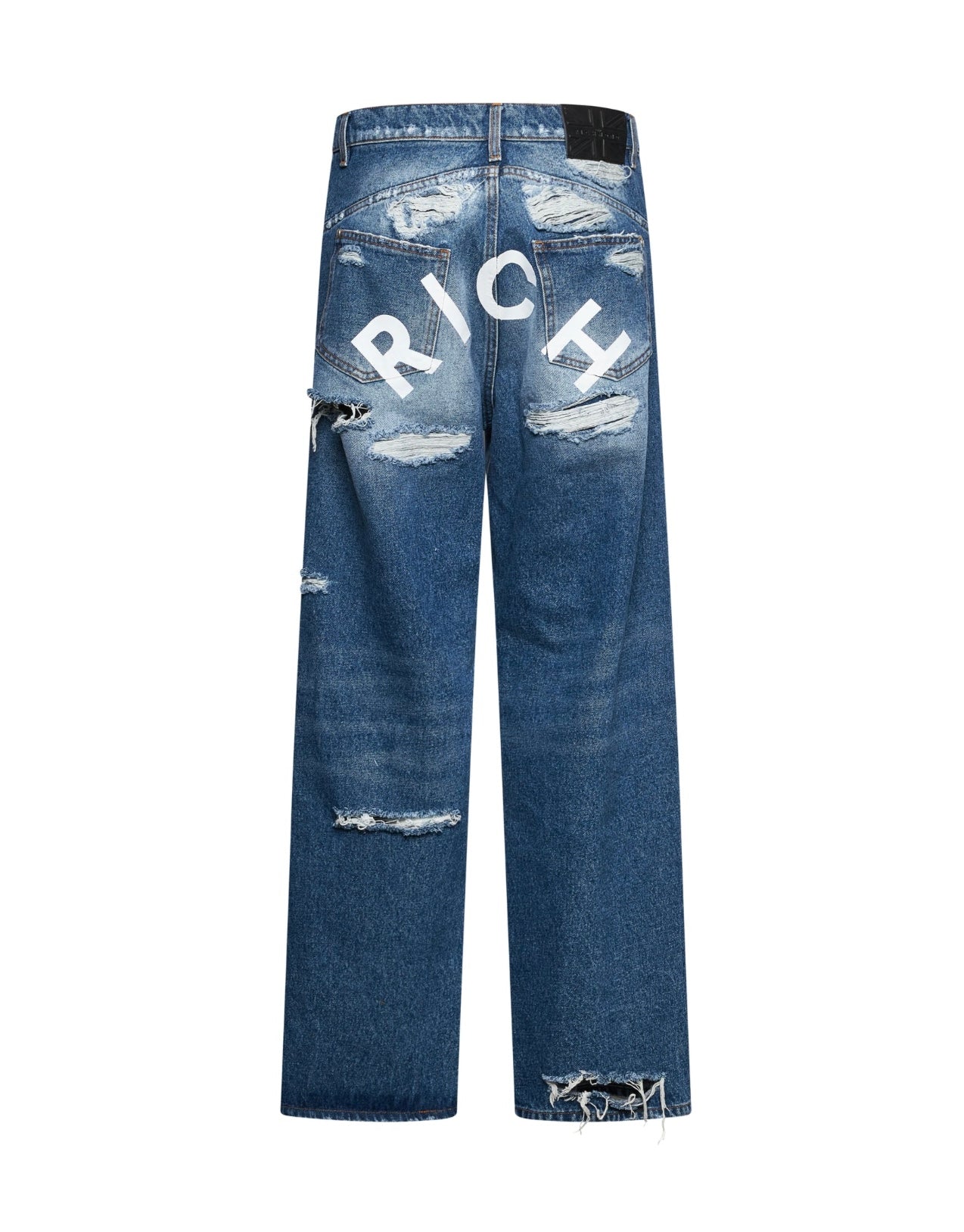 Jeans iconici John Richmond caratterizzati dal lettering “RICH” posizionato sul retro e da strappi e abrasioni che conferiscono un look vissuto e contemporaneo. Un capo dallo stile deciso, ideale per esprimere personalità e identità urbana.