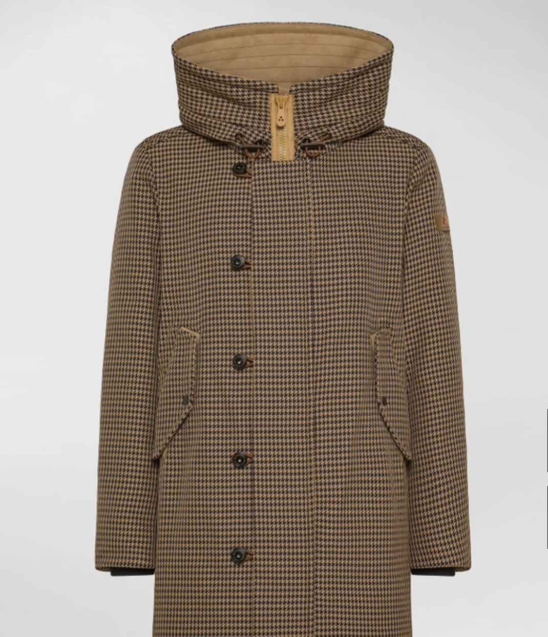 Parka lungo con fantasia pied de poule, realizzato in tessuto tecnico di filato di poliestere, dall’aspetto sofisticato e dal gusto laniero. La texture ricercata richiama l’eleganza dei classici britannici, mentre l’impostazione funzionale assicura performance elevate. L’imbottitura in piuma naturale certificata garantisce calore e leggerezza. L’ampio cappuccio fisso regolabile con coulisse, il collo a cratere e polsini antivento offrono protezione ottimale nelle giornate più fredde. Parte della linea Countryside per l’uomo, Peuterey esplora la tradizione inglese con un tocco tecnico che valorizza materiali innovativi e dettagli heritage.