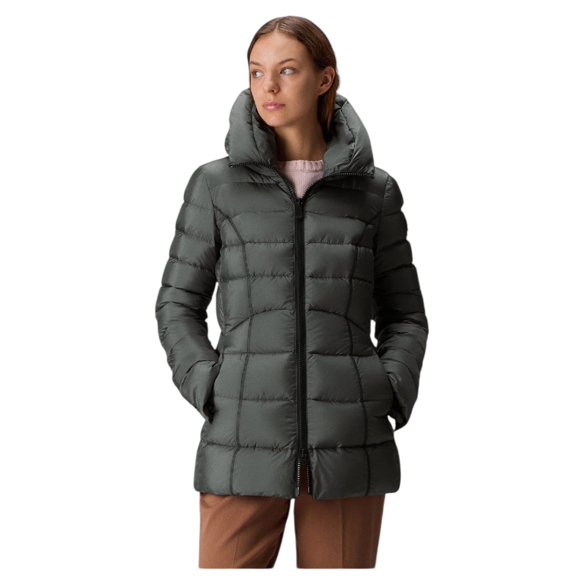 Piumino tecnico ultra leggero, realizzato in 100% poliestere riciclato post consumo, dalla mano morbida e dalla struttura super compatta, finitura opaca. L’imbottitura in piuma naturale certificata garantisce calore e protezione, mentre il trattamento idrorepellente PFC Free assicura una barriera efficace contro la pioggia leggera, senza l’uso di sostanze nocive per l’ambiente. Il fit asciutto e le trapunte differenziate, unite a un’impuntura in vita, valorizzano la silhouette con naturalezza. Il cappuccio fisso e il collo alto a cratere, full zip centrale con doppio cursore, completano un capo pensato per uno stile di vita attivo e trasversale, perfetto per molteplici abbinamenti.