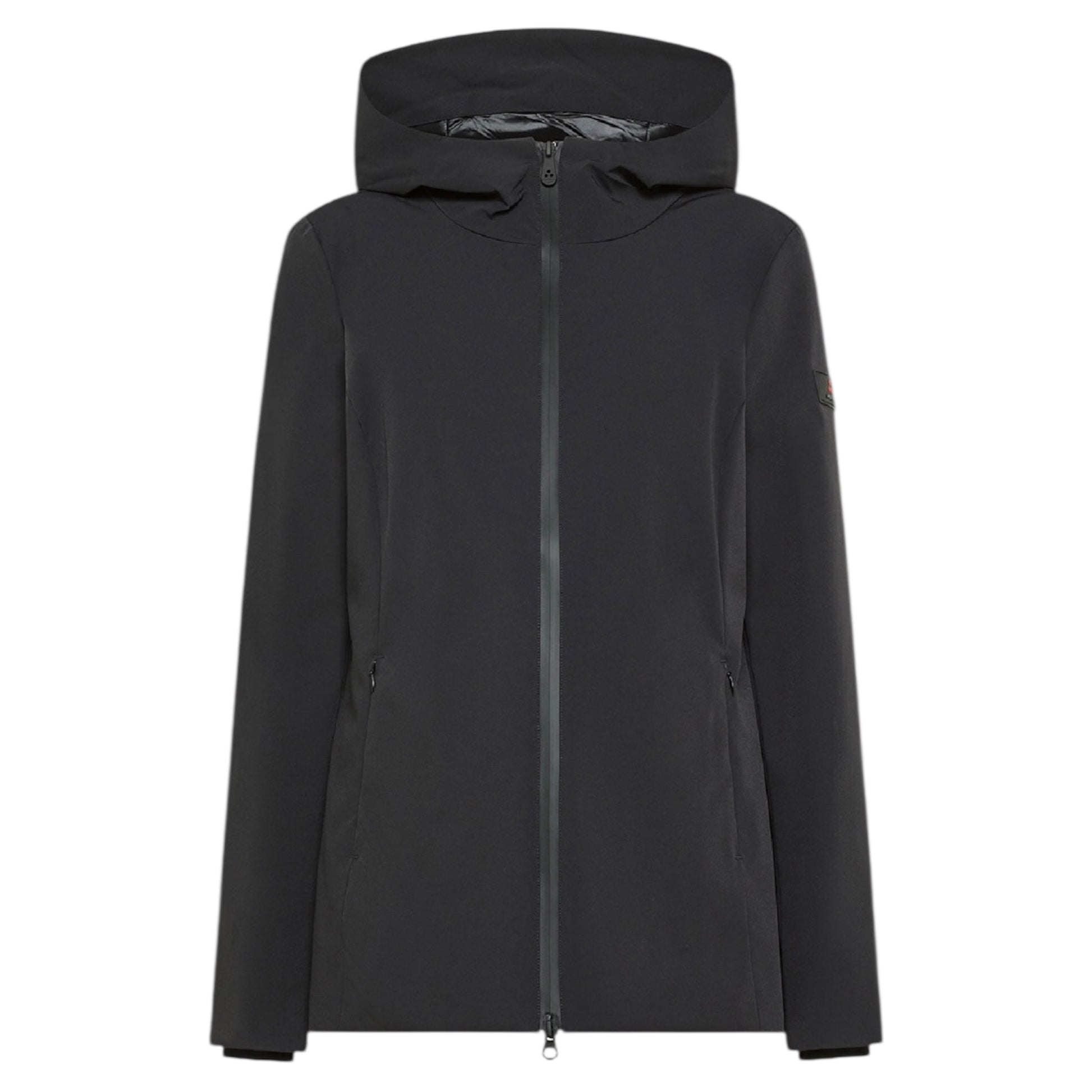 Giacca liscia, compatta e tecnica, realizzata in tela leggera di nylon bi-stretch accoppiata a un jersey interno morbido e confortevole. Il risultato è un capo elasticizzato, resistente e versatile, con imbottitura in materiale sintetico che garantisce calore e leggerezza. Il cappuccio fisso e i polsini antivento offrono una protezione ottimale, mentre i dettagli in contrasto colore aggiungono un accento grafico deciso. Un capo dal gusto active, senza rinunciare ad uno stile curato e femminile.