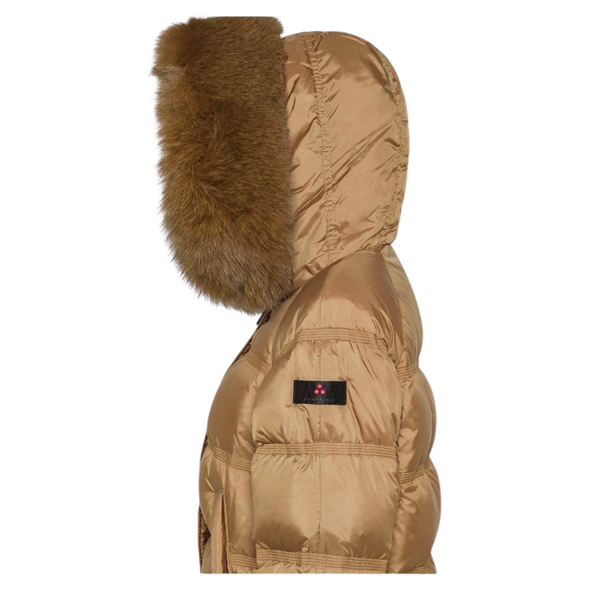 Puffer jacket ad ampie trapunte, in tessuto super-light in 100% poliestere riciclato da materiali post consumo, dalla mano morbida e dalla struttura super compatta. L’imbottitura in piuma d’oca certificata assicura calore elevato e leggerezza, mentre il trattamento idrorepellente PFC Free protegge senza l’uso di sostanze chimiche nocive. Di gusto urban sportswear, la shape ad A è regolabile grazie all’apertura delle zip laterali, mentre il cappuccio fisso è arricchito da un bordo in pelliccia di volpe staccabile in tono colore. Completano il modello le tasche a filetto, la chiusura con patta e bottoni che nasconde una zip a doppio cursore. Il modello, bestseller della collezione invernale di Peuterey, ora nei colori trend della stagione, può essere indossato anche in occasioni eleganti e mondane.