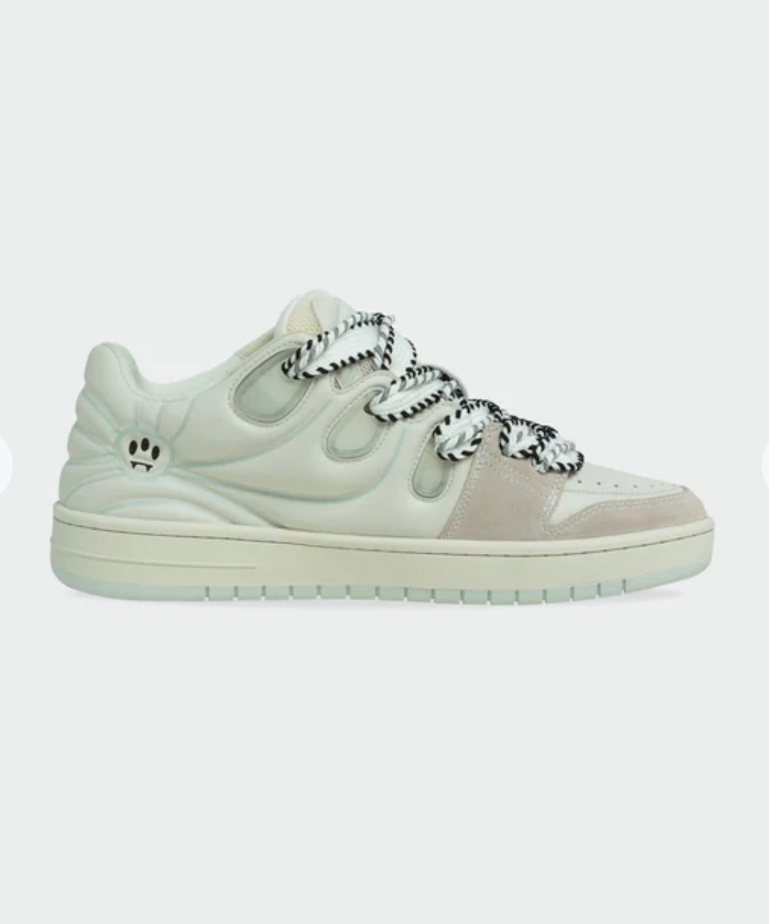 Sneakers Barrow con pannelli alternati in nappa, pelle scamosciata e mesh. Smile tridimensionale sul pannello laterale e scritta a contrasto Barrow sulla linguetta frontale. Dettaglio doppio laccio con ricamo a contrasto.