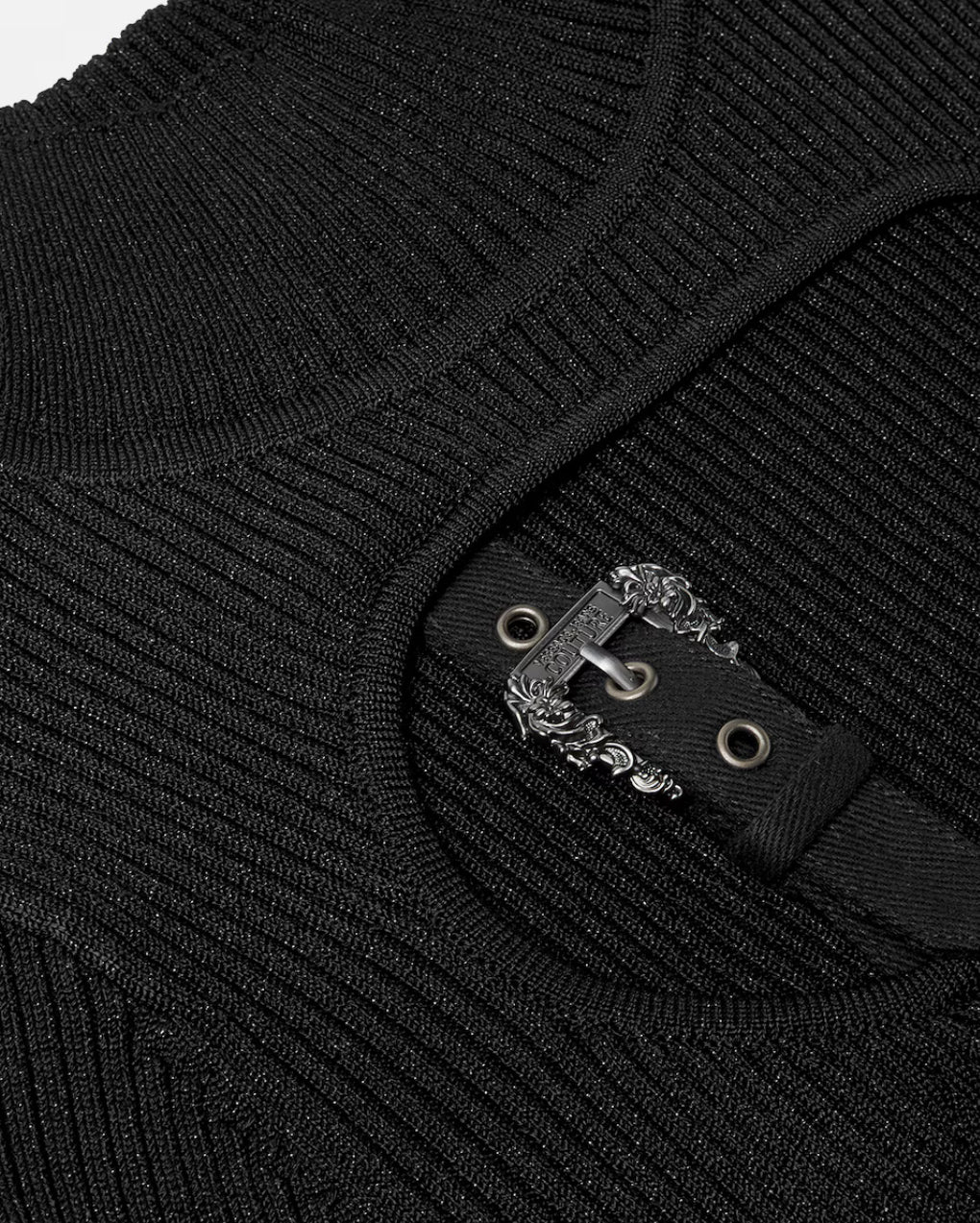 top in maglia a coste in lurex a maniche lunghe presenta un dettaglio con fibbia Baroque sul cut-out sul davanti.